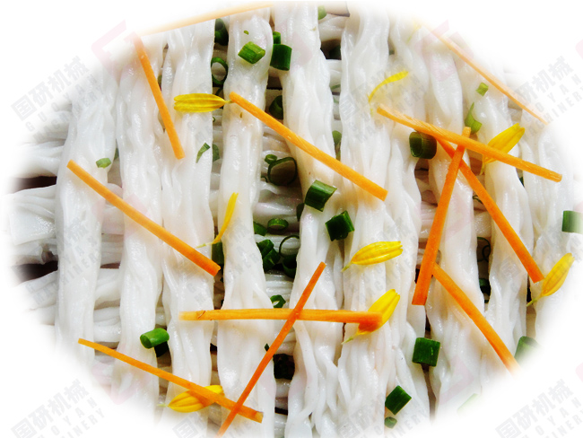 廣東拉腸粉具有白如雪、薄如紙、油光閃亮、香滑可口等特點(diǎn)。又因方便快捷,拿起即食的優(yōu)點(diǎn),廣受早餐時(shí)間匆忙的上班族喜愛。而傳統(tǒng)純靠蒸盤一張一張蒸片刮成型,生產(chǎn)效率低,勞動(dòng)強(qiáng)度大,無法量產(chǎn),從而錯(cuò)過銷售了高峰期的客流量。廣州國研機(jī)械正是看準(zhǔn)了此商機(jī),早在二十年前便已經(jīng)在河粉的基礎(chǔ)上增加了自動(dòng)的拉腸粉成型機(jī),讓商家除了可生產(chǎn)拉腸粉外,有多余的時(shí)間還可生產(chǎn)河粉,涼皮等產(chǎn)品,一機(jī)多用,讓銷售市場更多元化,獲得更多的利潤。
