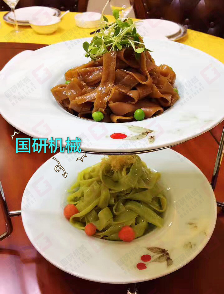 5、該機生產的拉皮、粉皮厚薄可任意調節,保全了原料的全部營養成份,味道鮮美,清亮剔透。